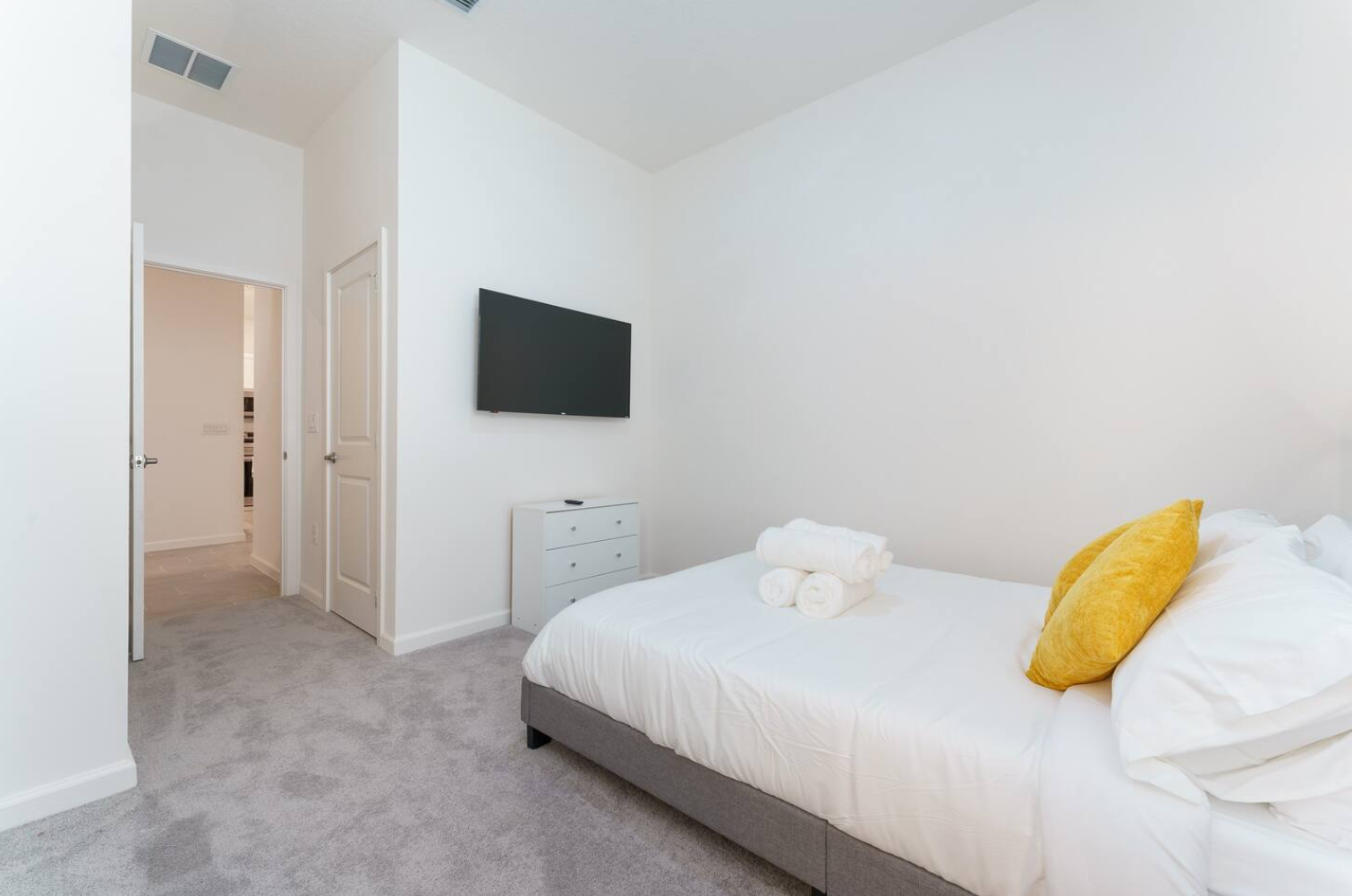 Welcome to cozy retreat in the heart of Kissimmee! - Queen bedroom with one Queen bed - Private bathroom with bathtub - Smart 50" Roku TV & wardrobe - Outdoor patio & swimming pool - Shared kitchen, dining, laundry & game room - 17 min to Disney & 25 min to Universal Studios - Travel to parks by Uber, rented car & public bus - Free access to pool & gym at the clubhouse - Self-check-in between 4 pm to 2am - Early check-in may be available from 12 pm for a fee - Discounts for long-term stays available