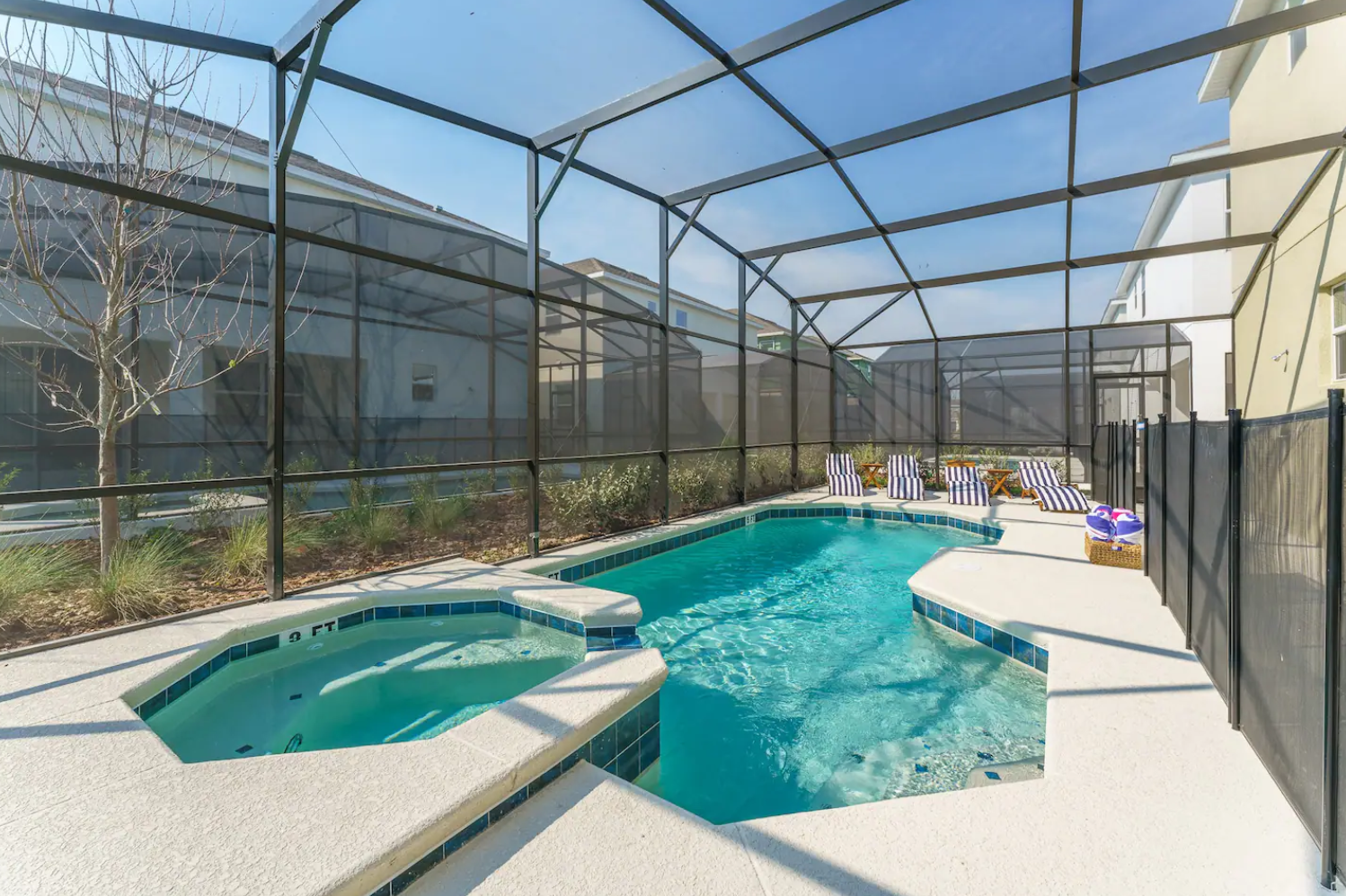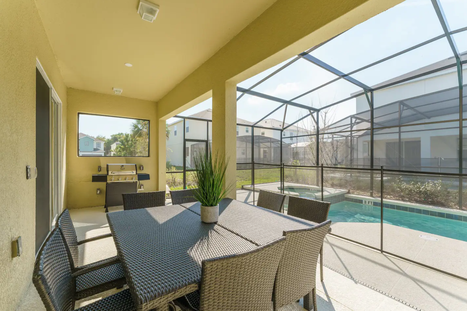 Welcome to stunning bedroom in shared house in beautiful resort! - Queen bedroom with one Queen bed - Private bathroom with bathtub - Smart 50" Roku TV & wardrobe - Outdoor patio & swimming pool - Shared kitchen, dining, laundry & game room - 17 min to Disney & 25 min to Universal Studios - Travel to parks by Uber, rented car & public bus - Free access to pool & gym at the clubhouse - Self-check-in between 4 pm to 2am - Early check-in may be available from 12 pm for a fee - Discounts for long-term stays available