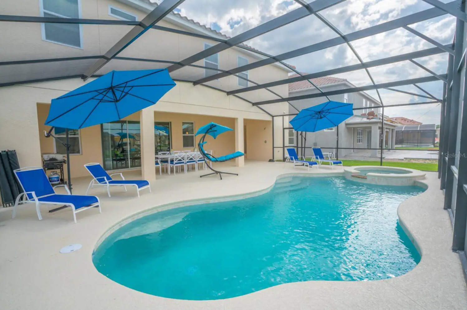 Indulge in luxury at our master bedroom close to Disney! - King bedroom with one king bed - Ensuite large walk-in bathroom - Smart TV & wardrobe in your room - Outdoor patio & swimming pool - Shared kitchen, dining, laundry & game room - 18 min to Disney & 27 min to Universal Studios - Travel to parks by Uber, rented car & public bus - Parking slot for one car at the house - Self-check-in between 4 pm to 2am - Early check-in may be available from 12 pm for a fee - Discounts for long-term stays available