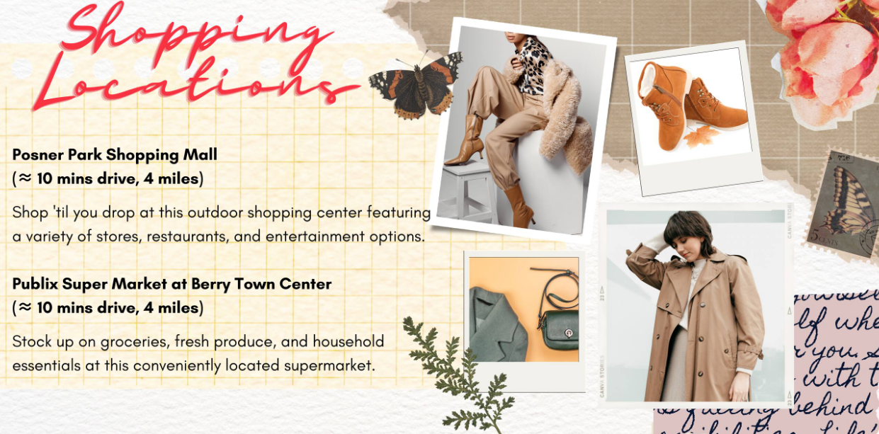 Get AroundLOCATIONS AND DISTANCES Please note that these times are approximate and may vary based on traffic conditions and your chosen route. Guests can travel to these locations by Uber/Lyft ride, rented car, or public transport. Sightseeing and Attractions: - Disney's Hollywood Studios: 20 mins, 9 miles - Walt Disney World Resort: 20 mins, 10 miles - Disney's Animal Kingdom: 20 mins, 10 miles - Epcot: 25 mins, 12 miles - SeaWorld Orlando: 25 mins, 17 miles - Universal Orlando Resort: 30 mins, 20 miles - Islands of Adventure: 30 mins, 20 miles - Fun Spot America Theme Parks: 30 mins, 21 miles - Gatorland: 30 mins, 22 miles - LEGOLAND Florida Resort: 35 mins, 25 miles Bars and Restaurants: - Manny's Original Chophouse: 5 mins, 2 miles. Enjoy mouthwatering steaks and hearty American fare at this popular steakhouse. - Ovation Bistro & Bar: 10 mins, 4 miles. Indulge in delicious contemporary cuisine and craft cocktails in a casual yet elegant setting. - Texas Roadhouse: 10 mins, 4 miles. Savor hand-cut steaks, fall-off-the-bone ribs, and made-from-scratch sides at this lively chain restaurant. - Hurricane Grill & Wings: 10 mins, 4 miles. Feast on flavorful wings, burgers, and seafood in a relaxed atmosphere with a beachy vibe. - Olive Garden Italian Restaurant: 15 mins, 6 miles. Experience classic Italian dishes and warm hospitality at this beloved chain eatery. Shopping Places: - Posner Park Shopping Mall: 10 mins, 4 miles. Shop 'til you drop at this outdoor shopping center featuring a variety of stores, restaurants, and entertainment options. - Publix Super Market at Berry Town Center: 10 mins, 4 miles. Stock up on groceries, fresh produce, and household essentials at this conveniently located supermarket. - Target: 10 mins, 4 miles. Find everything you need from clothing and electronics to home goods and groceries at this popular retail chain. - Walmart Supercenter: 15 mins, 6 miles. Discover a wide selection of merchandise, including groceries, electronics, apparel, and more, at unbeatable prices. - Marshalls & HomeGoods: 15 mins, 6 miles. Score great deals on brand-name clothing, home décor, and furnishings at this combined Marshalls and HomeGoods store. These dining and shopping options are just a short drive away from your accommodation, ensuring that you have everything you need for a comfortable and enjoyable stay!